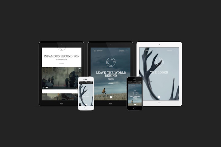 Branding, corporate identity and Fabrik Bespoke design & build for this full service production company with forty years experience, recently recognised as the 5th most awarded production house in the world by D&AD. Park Village's bespoke theme includes light or dark tone options and dynamic text layer colouring to harmonise the text and interface elements of each project to their imagery.